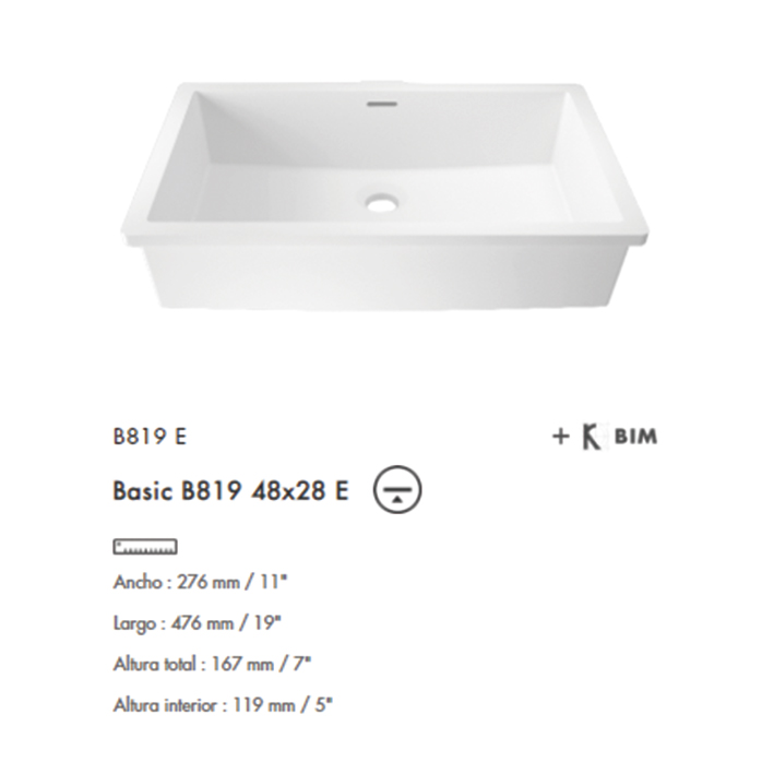 Lavabo Basic bajo cubierta B819E 48×28 Krion