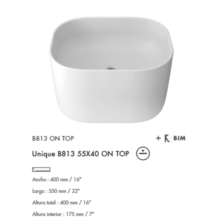 Lavabo On Top Unique B813 55×40 Krion